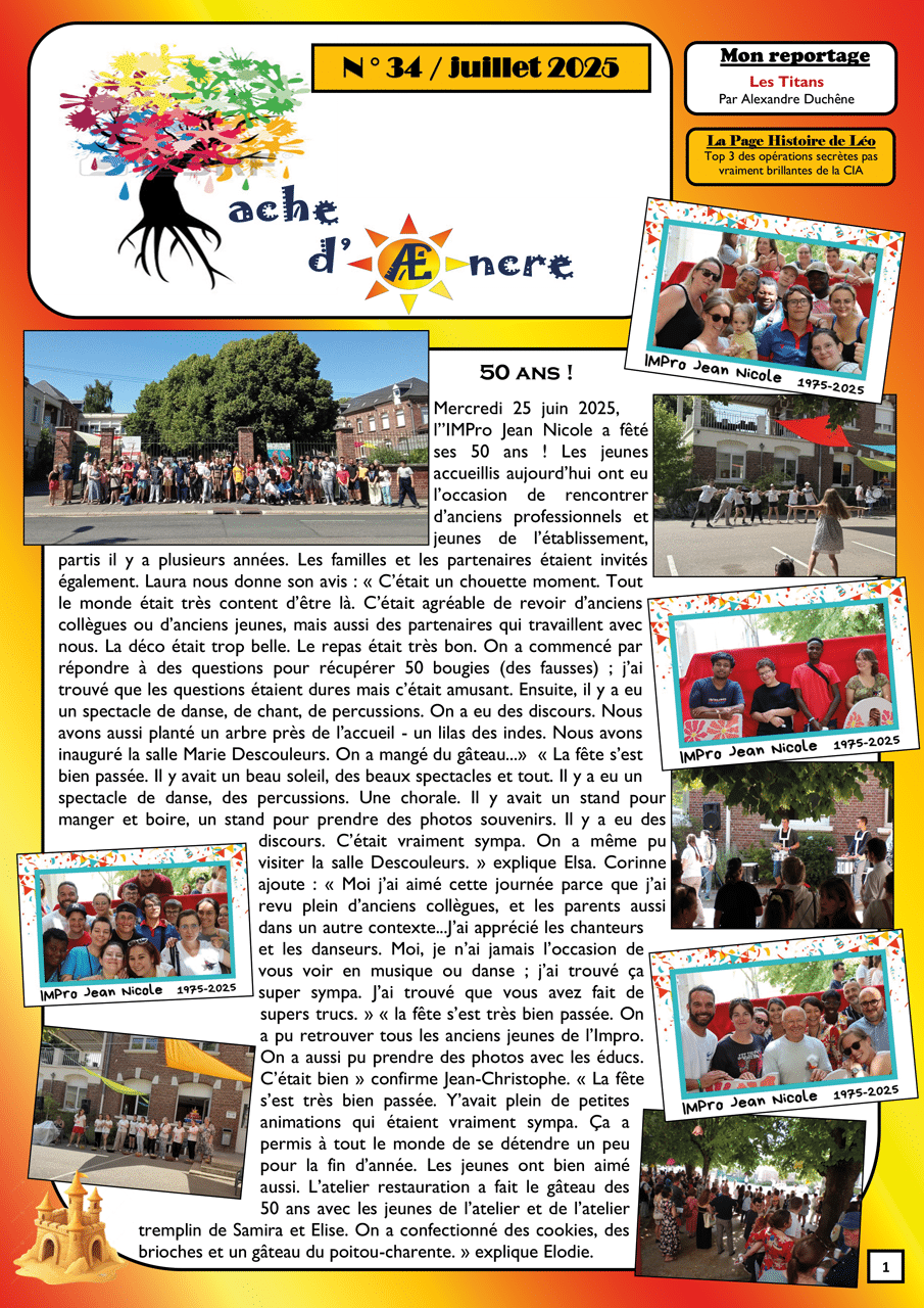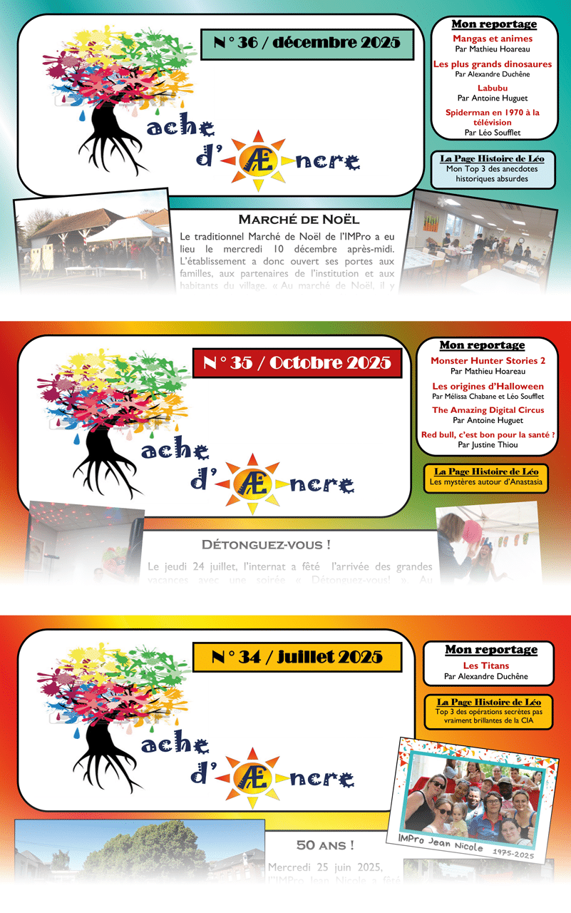 Avant chaque vacances scolaires, les jeunes de l’IMPro Jean Nicole dans l’Oise, éditent un petit journal avec des reportages, des jeux, des recettes et plein d’autres surprises !