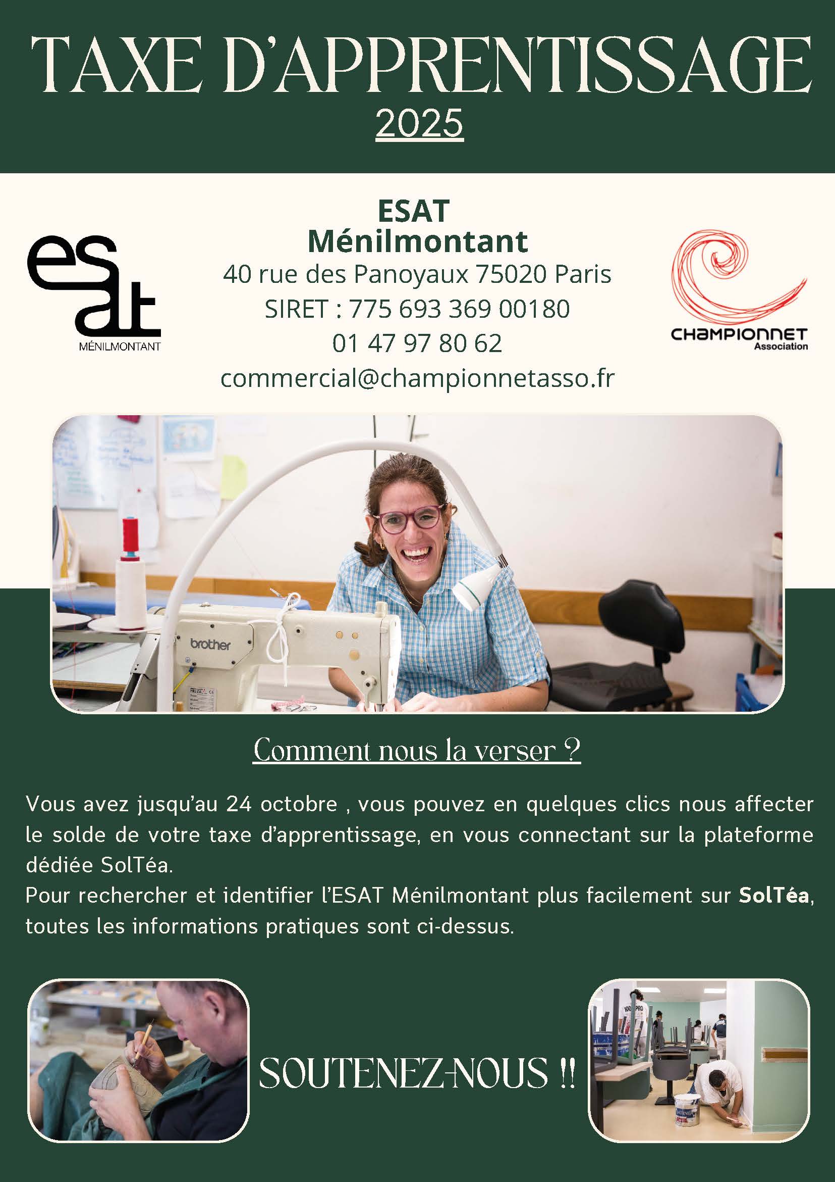 Esat Ménilmontant Association CHAMPIONNET Dernière ligne droite pour nous soutenir via la Taxe d’Apprentissage !
